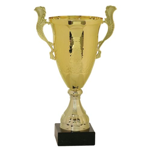 solid marble base. This metal cup trophy is