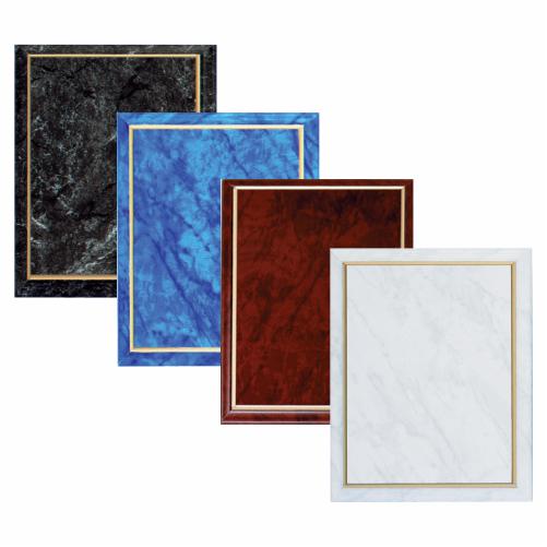 An economical yet elegant marble finish plaque. You can get that marble look for a fraction of the cost of real marble. A shiny gold cove edge completes this beautiful plaque design.